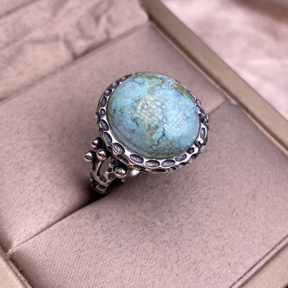 ارتقِ بأناقتك مع خاتم الفيروز الفريد، المصنوع من الفضة الإسترلينية S925 بتصميم كلاسيكي عتيق . حجر الفيروز الطبيعي من مقاطعة هوبي يضفي لمسة من الجمال الراقي والهدوء. قطعة مثالية لعشاق الإكسسوارات الفريدة التي تجمع بين الأصالة والحداثة.