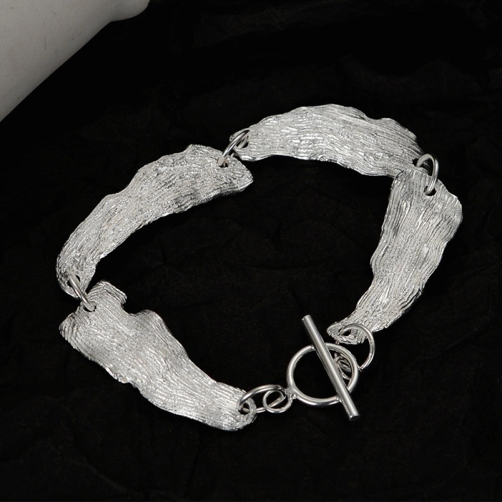 تأنقي بسوار فضي أنيق من لومِن، مصنوع من أجود أنواع الفضة عيار 925. تصميم راقي وخفيف الوزن (17 غرام)، بطول 17.5 سم. هدية مثالية لنفسك أو لمن تُحبين.