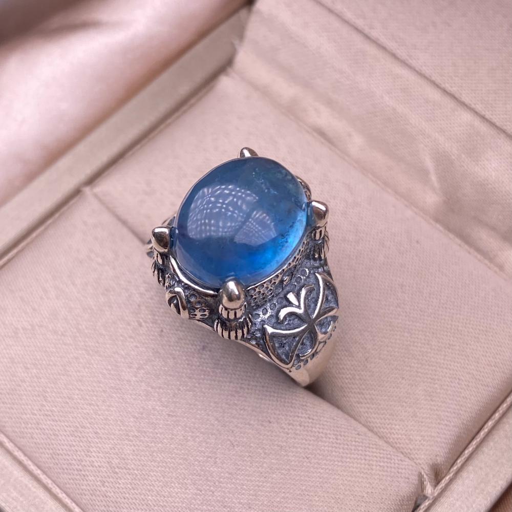 "ارتقِ بإطلالتك مع خاتم الأكوامارين الفاخر المصنوع من الفضة الإسترلينية S925. يتميز هذا الخاتم بتصميم فريد يناسب أصحاب الذوق الرفيع الذين يبحثون عن التميز. حجر الأكوامارين الأزرق يبرز جماله الطبيعي بلونه الجذاب ومتانته العالية التي تضمن عدم التشقق، مما يجعله قطعة مثالية لإضافة لمسة من الغموض والأناقة إلى مجوهراتك. تصميمه اللافت والمبالغ فيه يمنحك إطلالة جريئة وغير تقليدية."