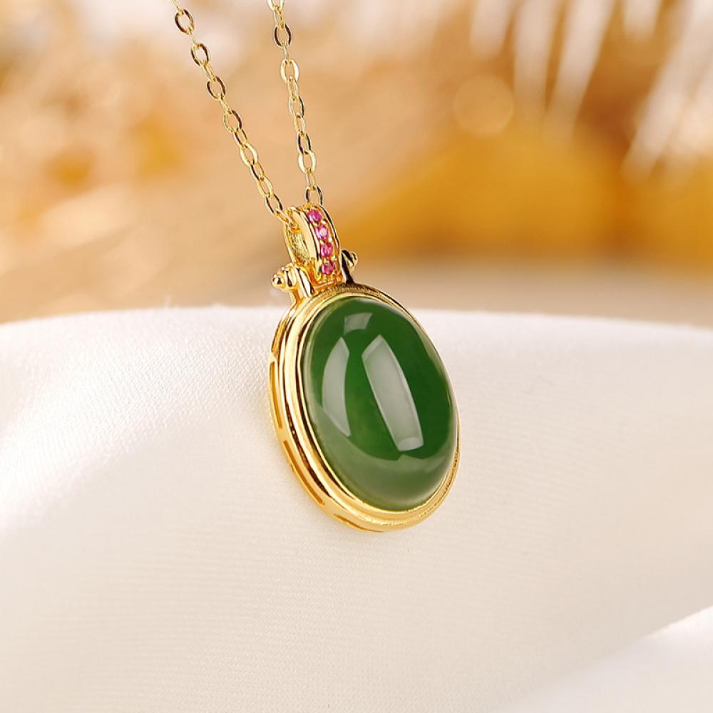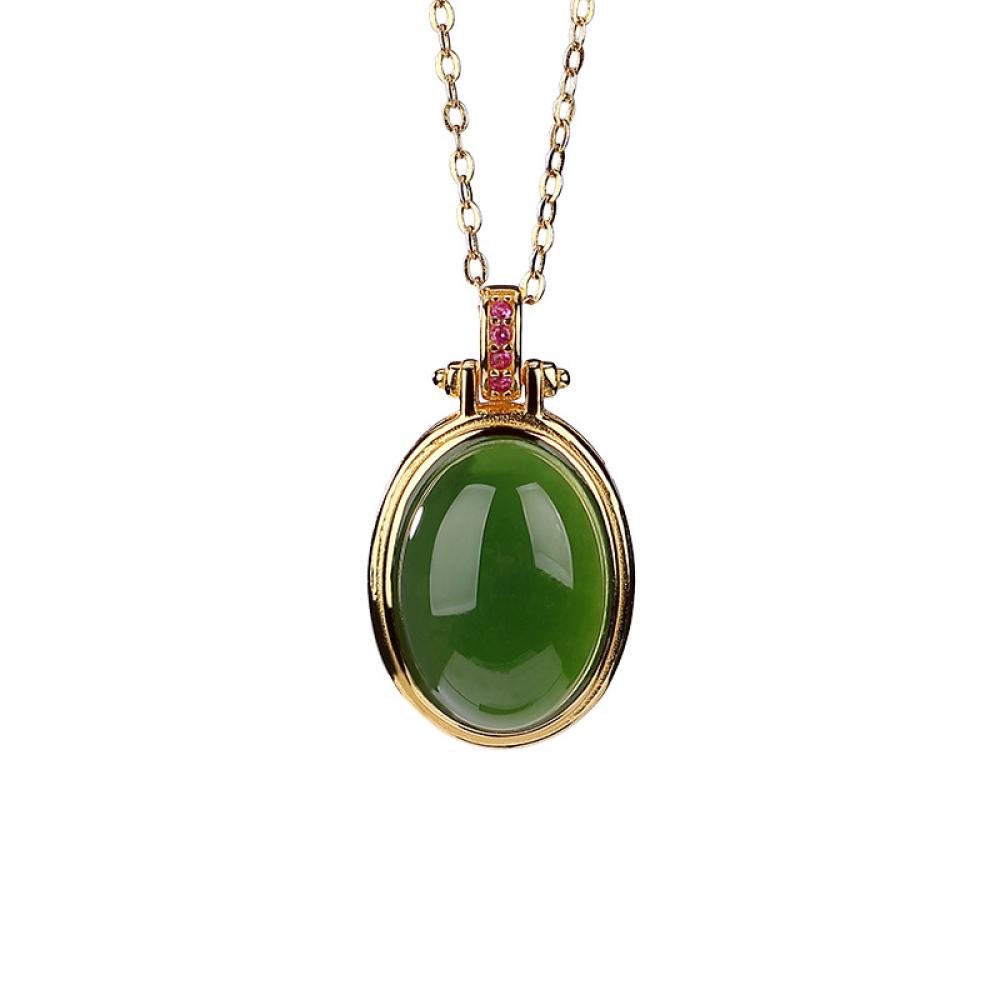 قلادة رائعة على شكل حرف Y من لومِن، مرصّعة بحجر يشم طبيعي بدون شوائب، مصنوعة من الفضة عيار 925. حجم القلادة 23*13 مم، حجم الحجر الرئيسي 10*14 مم، الوزن 2.5 غرام، طول السلسلة 46 سم.