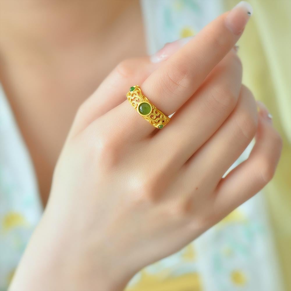 خاتم يشم هتيان الطبيعي - أناقة التراث بتصميم عصري