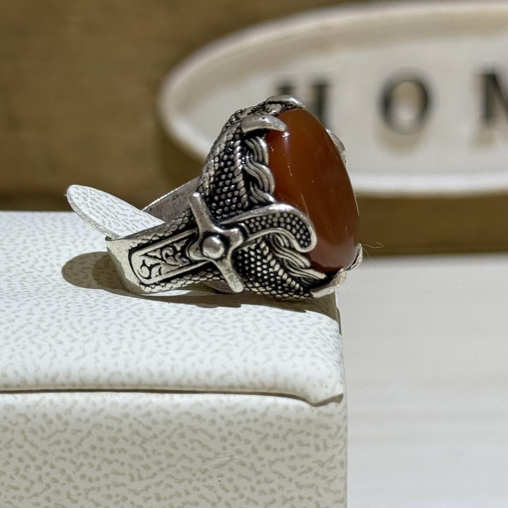 خاتم عقيق يماني صياغة يمنية موديل خنجر