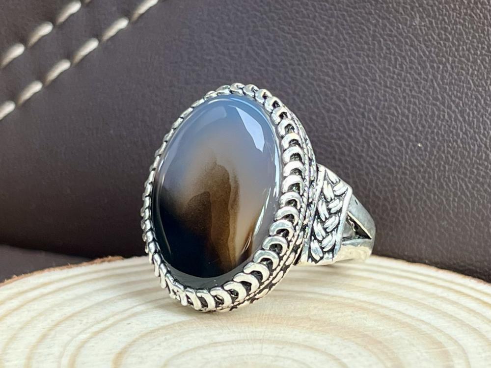 خاتم فضة أنيق بحجر عقيق يماني مشجر
