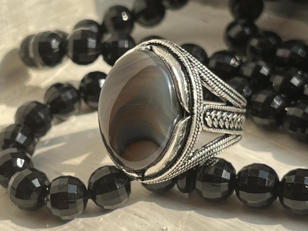 أضف لمسة من الأناقة الكلاسيكية إلى إطلالتك مع هذا الخاتم الفضي الأصلي. مصنوع يدوياً من الفضة الخالصة، ويزدان بحجر عقيق يماني طبيعي فريد بجماله الأخّاذ. تصميمه البسيط والراقي يجعله قطعة مثالية تُناسب جميع المناسبات، بينما يُضفي حجر العقيق بريقاً دافئاً ولمسة من الفخامة. هدية رائعة تُعبّر عن الذوق الرفيع.
