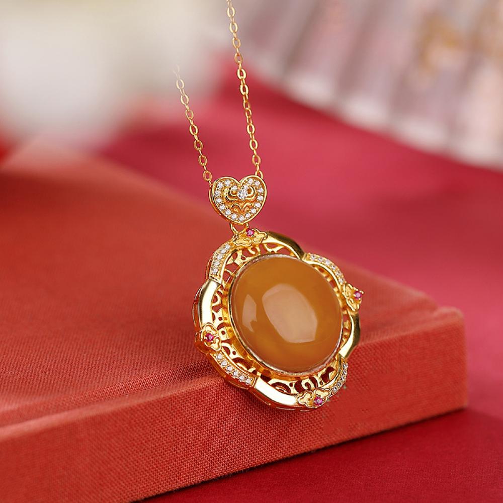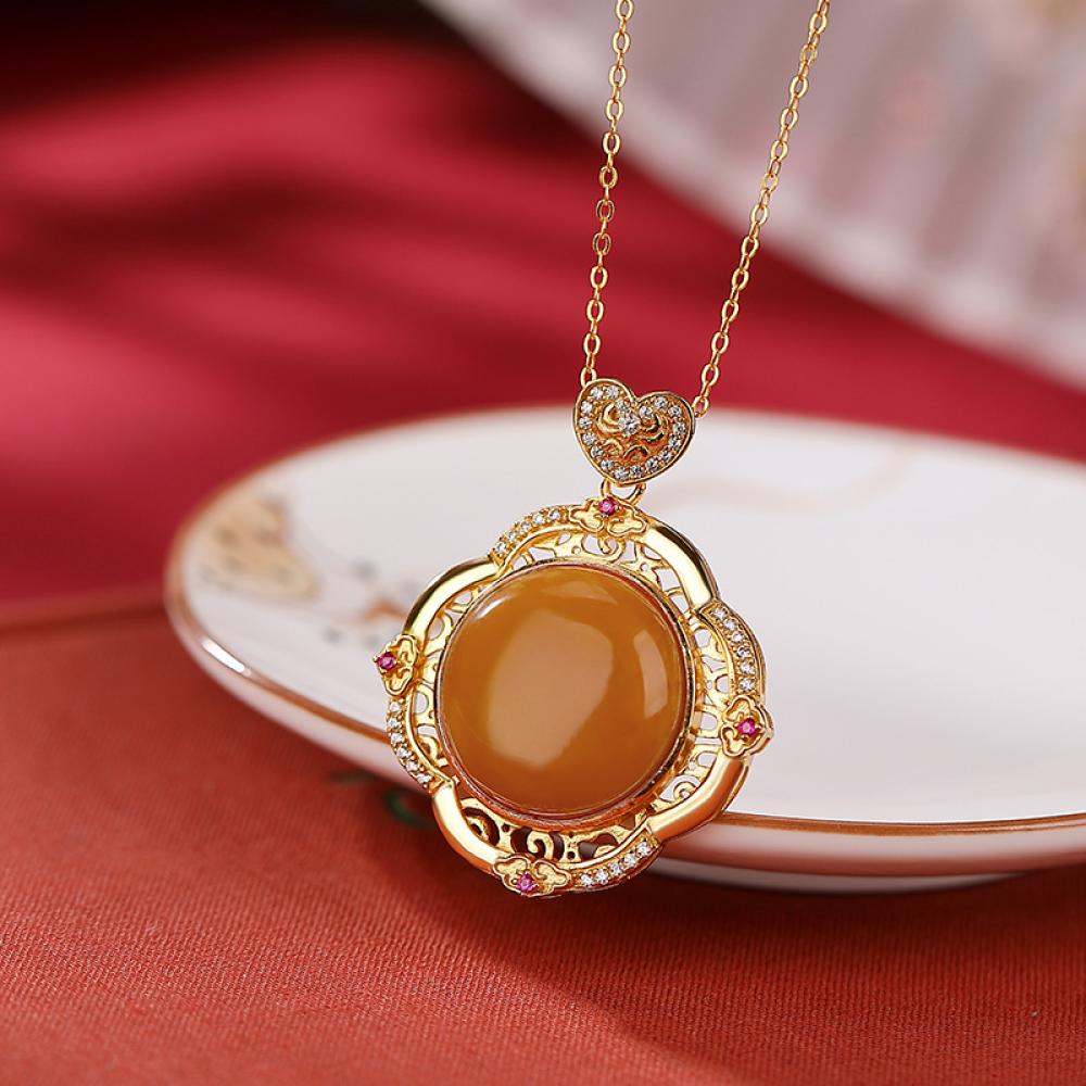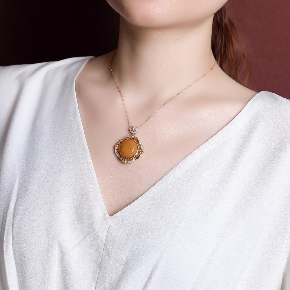 قلادة كهرمان فاخرة بتصميم بارز - لمسة من الفخامة